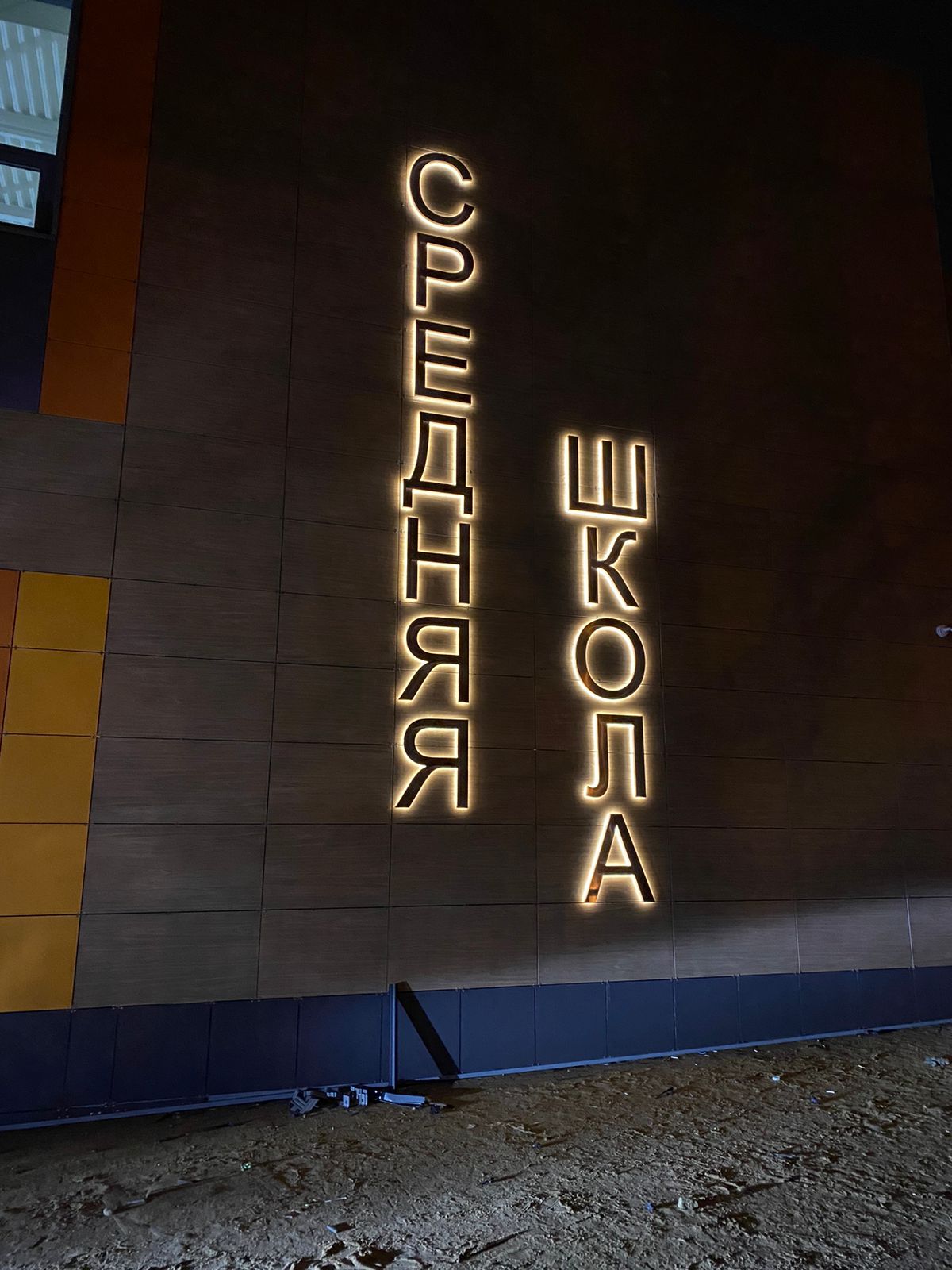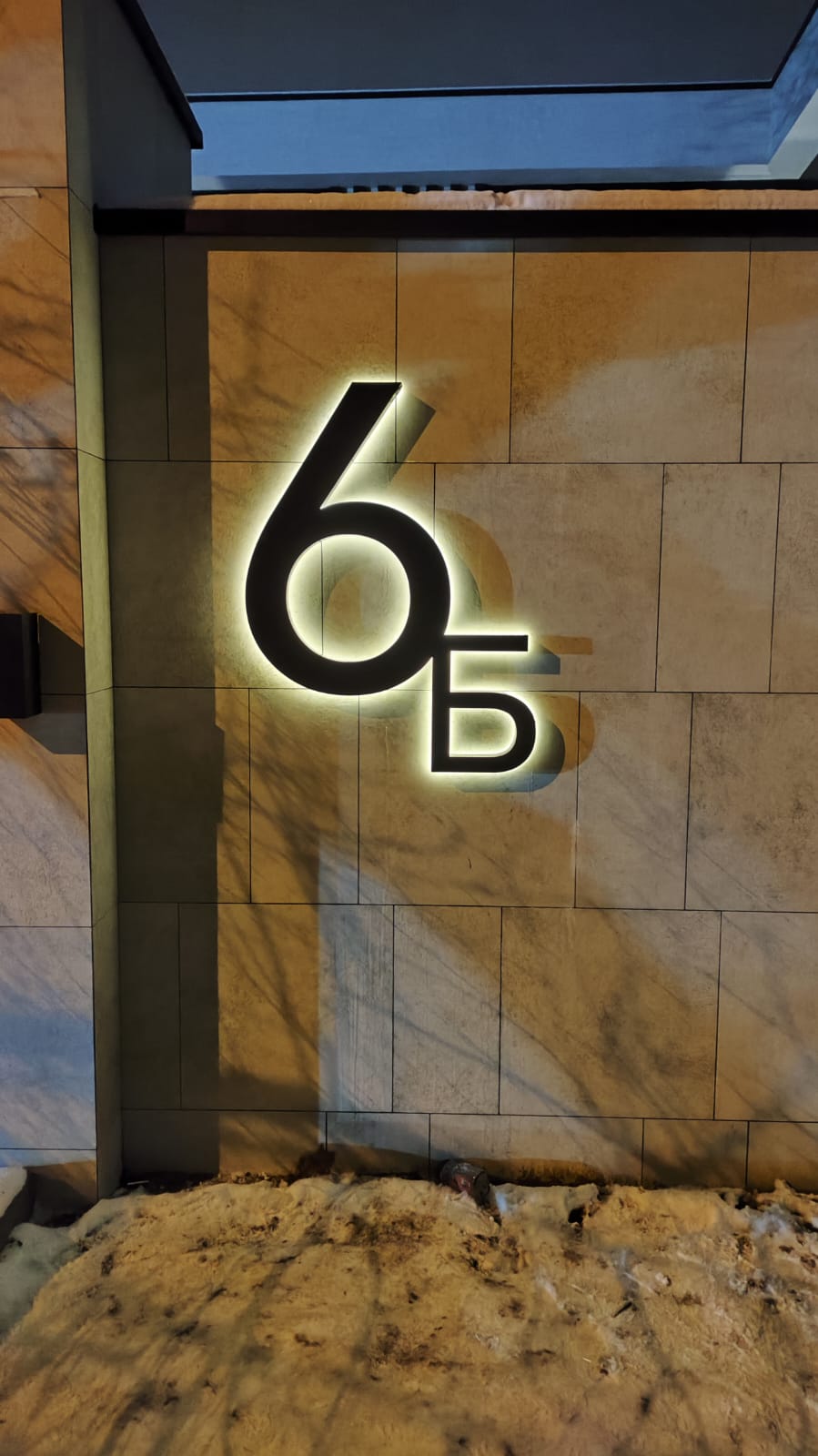 Контражурная подсветка создаёт светящийся ореол вокруг букв. Это делает их особенно заметными в темное время суток. При этом свет равномерно распределяется, не давая резких теней и бликов.