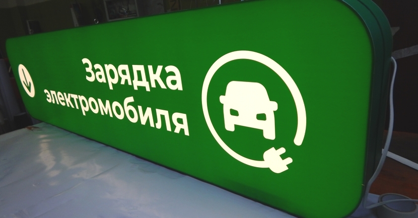 Клиент просил доставить и установить вывеску по адресу: Подольск, Пролетарская ул., 1. Короб закреплен с помощью металлических кронштейнов на фасаде здания.
