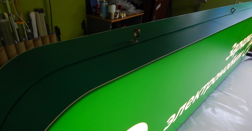 Готовая конструкция была изготовлена за 7 дней, установлена за 2 часа. Вывеска стабильно работает с момента установки уже 9 месяцев.