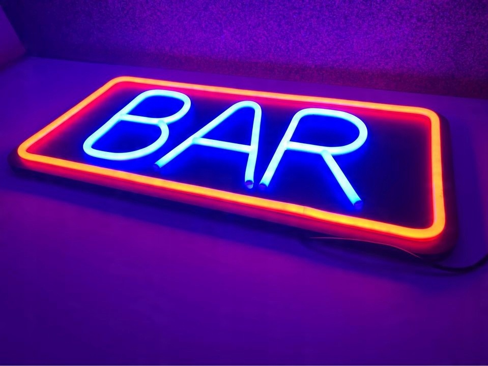 На встрече с клиентом уточнили размеры места установки (на стене), бюджет и требования к типу и дизайну неоновой вывески. Для создания светящихся элементов используются стеклянные трубки, заполненные инертным газом, который светится при прохождении электрического тока. Внутри трубок находятся электроды, которые создают электрический разряд, вызывающий свечение. Для букв и контуров фигуры применяются трубки разного диаметра, чтобы добиться чёткости и яркости изображения.
