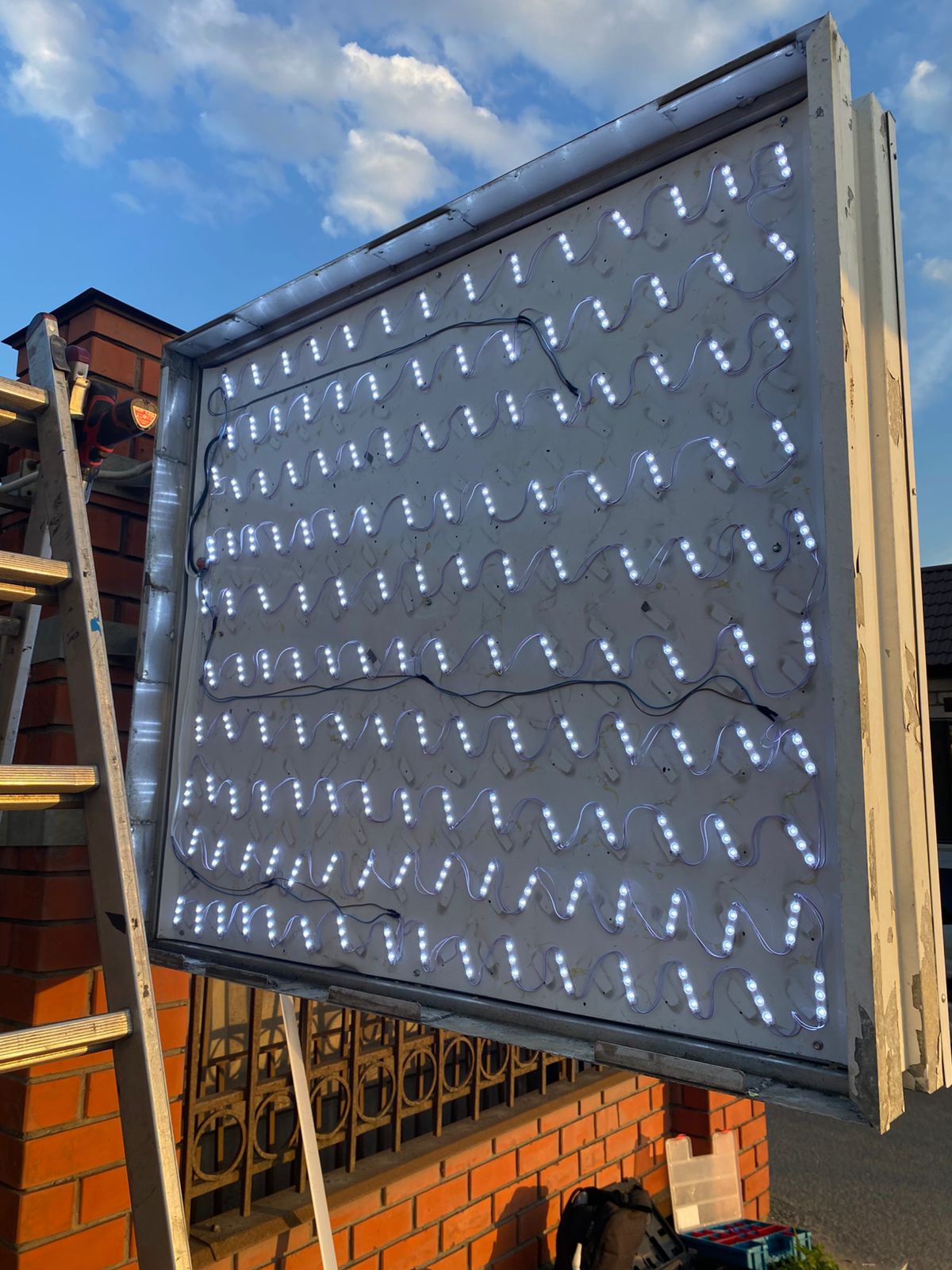 Заказчику нужно было отправить и установить объемные буквы без подсветки по адресу: ул. Аттилио Камоцци, 1, п. г. т. Чашниково. Вывеска с влагозащитой IP67 установлена на стене. Для разметки отверстий использован лазерный уровень. В просверленные отверстия вставили химические анкеры. Кабели уложили в кабель-канал и спрятали за вывеской. Вывеска установлена с учётом требований к обслуживанию и очистке объемных букв из ПВХ пластика без подсветки. Установка вывески произведена на стену. На монтаж ушло 4,5 часа.