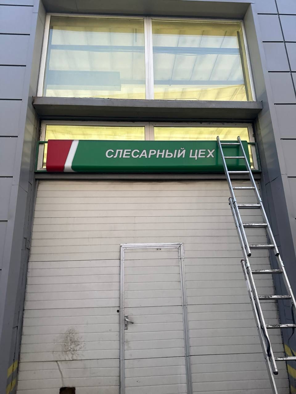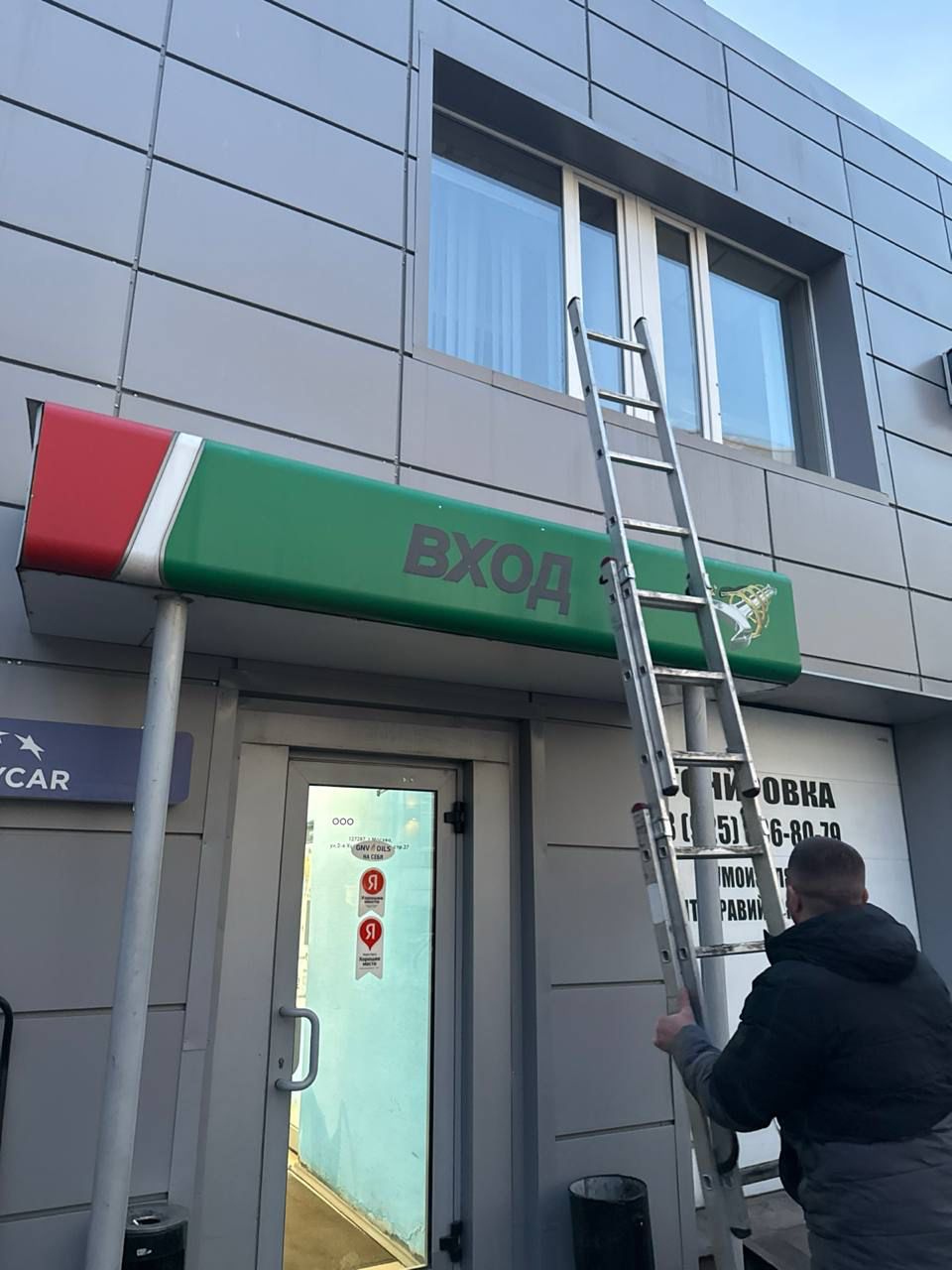 Заказчику нужно было отправить и установить вывеску по адресу: Лихачёвский пр., 7, Долгопрудный. Вывеска с влагозащитой IP67 установлена на фасаде. Для разметки отверстий использован лазерный уровень. В просверленные отверстия вставили химические анкеры. Кабели уложили в кабель-канал. Логотип установлен с учётом требований к обслуживанию и очистке светового логотипа. Установка вывески произведена на металлическую раму. На монтаж ушло 1,5 часа.