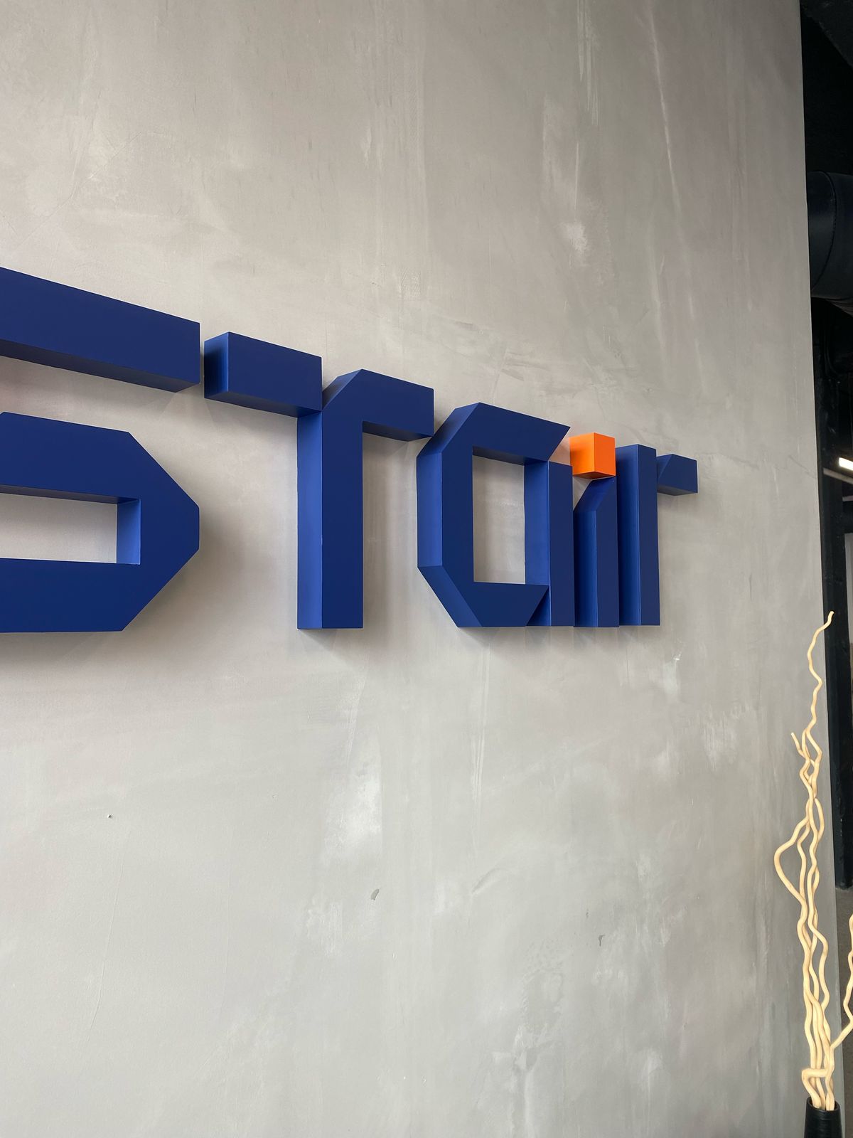 На встрече с клиентом уточнили размеры места установки (стена внутри ТРЦ), бюджет, требования к типу и дизайну светового короба с инкрустацией. Дизайнеры предложили несколько вариантов, и клиент выбрал прямоугольный короб из алюминиевого композита и ПВХ с фрезеровкой и инкрустацией букв из оргстекла. Размеры короба: 300х55 см. При помощи 3D-макета определились с лаконичным шрифтом без засечек, буквы оклеенные пленкой.