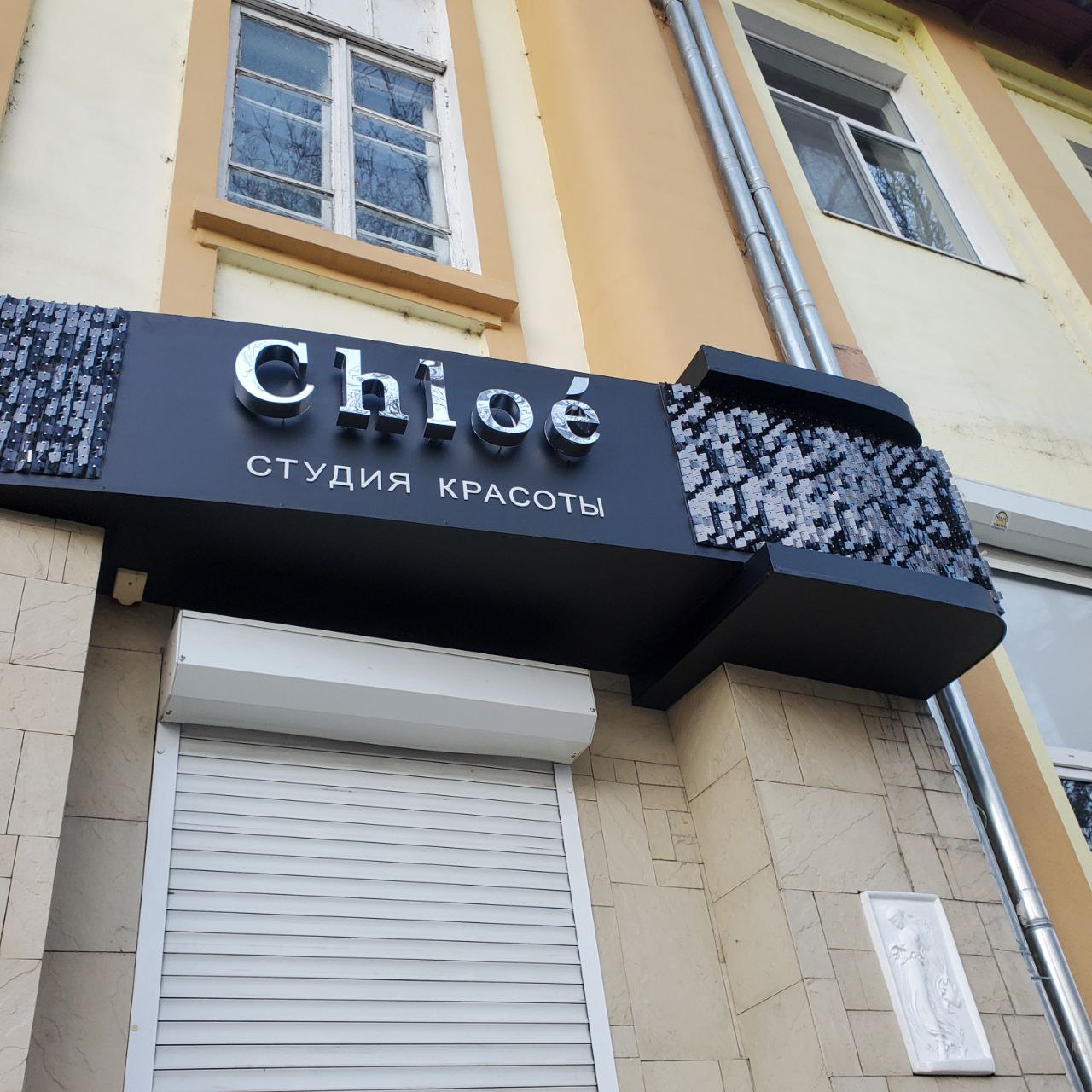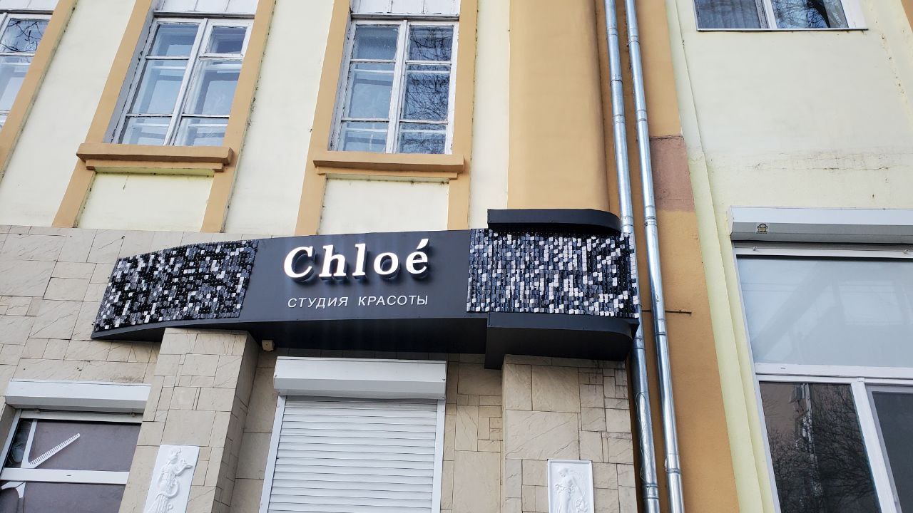 Заказчик — студия красоты — обратились к нам для изготовления живой вывески с пайетками, которая бы гармонично смотрелась на фасаде здания. Основные требования при выполнении заказа: